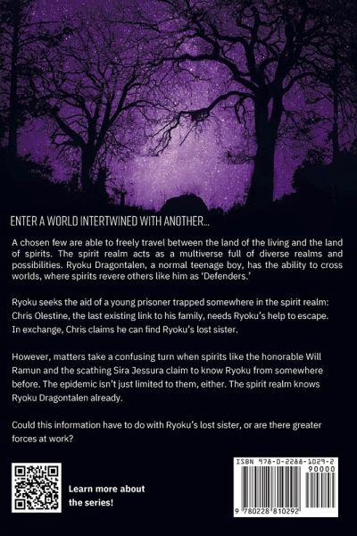Enter a world intertwined with another... A chosen few are able to freely travel between the land of the living and the land of spirits. The spirit realm acts as a multiverse full of diverse realms and possibilities. Ryoku Dragontalen, a normal teenage boy, has the ability to cross worlds, where spirits revere others like him as 'Defenders.' Ryoku seeks the aid of a young prisoner trapped somewhere in the spirit realm: Chris Olestine, the last existing link to his family, needs Ryoku's help to escape. In exchange, Chris claims he can find Ryoku's lost sister. However, matters take a confusing turn when spirits like the honorable Will Ramun and the scathing Sira Jessura claim to know Ryoku from somewhere before. The epidemic isn't just limited to them, either. The spirit realm knows Ryoku Dragontalen already. Could this information have to do with Ryoku's lost sister, or are there greater forces at work?