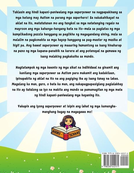 Introduction: Every child is unique, with their own strengths, talents, and superpowers. Kids with Autism are no different. They have extraordinary abilities that make them shine in special ways. This book is here to celebrate those superpowers and to show how they can lead to amazing careers. In this bilingual story, written in both English and Tagalog, we'll explore the world of Autism and meet real-life heroes who use their superpowers every day. Whether it's creating art, solving puzzles, or helping others, these kids show us that being different is something to be proud of! Tagalog Translation: Ang bawat bata ay natatangi, may kanya-kanyang lakas, talento, at superpower. Ang mga batang may Autism ay hindi naiiba. Mayroon silang mga pambihirang kakayahan na nagbibigay-liwanag sa kanilang espesyal na mga paraan. Ang librong ito ay nandito upang ipagdiwang ang mga superpower na iyon at ipakita kung paano ito humahantong sa mga kamangha-manghang karera. Sa bilinggwal na kuwentong ito, na isinulat sa Ingles at Tagalog, susuriin natin ang mundo ng Autism at makikilala ang mga totoong bayani na gumagamit ng kanilang mga superpower araw-araw. Mula sa paglikha ng sining, paglutas ng mga puzzle, o pagtulong sa iba, ipinapakita ng mga batang ito na ang pagiging iba ay isang bagay na dapat ipagmalaki!