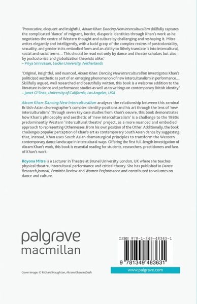 Through seven key case studies from Khan's oeuvre, this book demonstrates how Akram Khan's 'new interculturalism' is a challenge to the 1980s western 'intercultural theatre' project, as a more nuanced and embodied approach to representing Othernesses, from his own position of the Other.