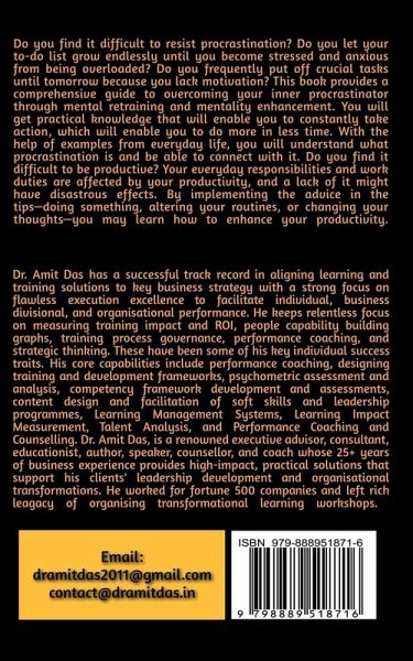 This book will provide you with incredible advice on how to increase your productivity and achieve success in all you do. See how much more productive you become by adhering to these rules. Learn how to increase productivity, create a better work environment, prioritise tasks more effectively, and improve your focus. Anyone who struggles with developing self-discipline, procrastination should read this book. All the chapters in the book on the cost of self-sabotage to be quite convincing and illuminating. It also helps you feel more deeply connected to the meaning of life. With the help of these suggestions, you may better manage your life and find things to be simpler than before. You can achieve your short- and long-term goals by following certain recommended measures. You can avoid procrastination temptations by following the advice. This book will teach you how to manage your time effectively so that you may profit from it no matter who you are or what you do.