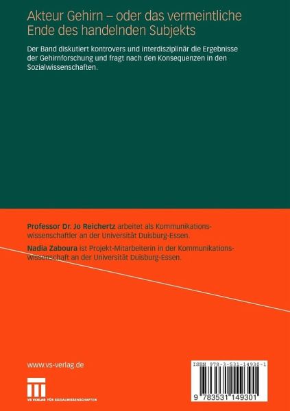 Akteur Gehirn - oder das vermeintliche Ende des sinnhaft handelnden und kommunizierenden Subjekts.- Akteur Gehirn - oder das vermeintliche Ende des sinnhaft handelnden und kommunizierenden Subjekts.- Neurowissenschaftliche Positionen.- Können wir unser eigenes Gehirn als Gehirn erkennen?.- Gene, Meme, "freier Willer": Persönlichkeit als Produkt von Nervensystem und Umwelt.- Die Frage nach der Willensfreiheit - Konsequenzen für die Socialwissenchaften.- Die kausale Relevanz des Mentalen - Illusion oder Realität?.- Das neuronale Korrelat und Max Webers Konzept der soziologischen Kausalerklärung Warum die Neurowissenschaft keine Konkurrentin der Soziologie ist.- Wie viel Freiheit braucht die sinnverstehende Soziologie?.- Sociales Handeln und Intentionalität.- Die Bedeutung des Handelns - Zum Verhältnis von Wissenssoziologie und neuropsychologischer Hirnforschung.- Sinnverstehende Soziologie, Neurobiologie und die Mathematik des Gehirns.- Wer entscheidet, wer entscheidet? Fragen zur Theorie und Empirie zugerechneter Intentionalität.- Sociale Phänomene außerhalb kognitiver Kontrolle: Emotion, intuitives Verstehen und Kreativität.- Emotionen zwischen Amygdala und sozialer Semantik.- Sichern Spiegelneurone die Intersubjektivität?.- Was bleibt vom göttlichen Funken ? Über die Logik menschlicher Kreativität.- Das Ich in Psychologie und Psychoanalyse.- The Psychobiology of Dissociative Identity Disorder.- Es- Ich- Überich oder entzweites Ich? Eine Kontroverse, die neurowissenschaftlich nicht zu entscheiden ist.- Das Trauma der Hirnforschung - Der Einzug der Neurobiologie in die psychoanalytische Traumatologie als Symptom der gesellschaftlichen Naturalisierung des Subjektiven.- Die Neurowissenchaften als Gegenstand socialwissenchaflicher Analyse.-Die Du-Perspektive in der Hirnforschung.- Hirnforscher als Neurosoziologen? Eine Debatte zum Freien Willen im Feuilleton.