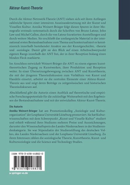 Durch die Akteur-Netzwerk-Theorie (ANT) ziehen sich seit ihren Anfängen zahlreiche Spuren einer intensiven Auseinandersetzung mit der Kunst und Visuellen Kultur. Annika Weinert-Brieger folgt diesen Spuren in ihrer Monografie erstmals systematisch durch die Schriften von Bruno Latour, John Law und Michel Callon, durch die von Latour kuratierten Ausstellungen und durch weitere Medien. Sie erschließt das umfangreiche Material in der international ersten Bestandsaufnahme zum Thema und kontextualisiert es kenntnisreich innerhalb bestehender Ansätze aus der Kunstgeschichte, -theorie und -soziologie. Damit gibt sie den Blick auf einen Arbeitsschwerpunkt eigenen Rangs innerhalb der ANT frei, der in ihrer Rezeption bislang einen blinden Fleck markierte.
