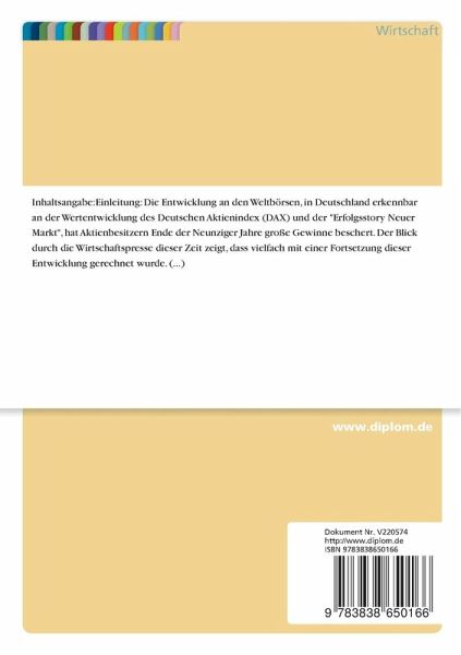 Die Entwicklung an den Weltbörsen, in Deutschland erkennbar an der Wertentwicklung des Deutschen Aktienindex (DAX) und der "Erfolgsstory Neuer Markt", hat Aktienbesitzern Ende der Neunziger Jahre große Gewinne beschert. Der Blick durch die Wirtschaftspresse dieser Zeit zeigt, dass vielfach mit einer Fortsetzung dieser Entwicklung gerechnet wurde.
