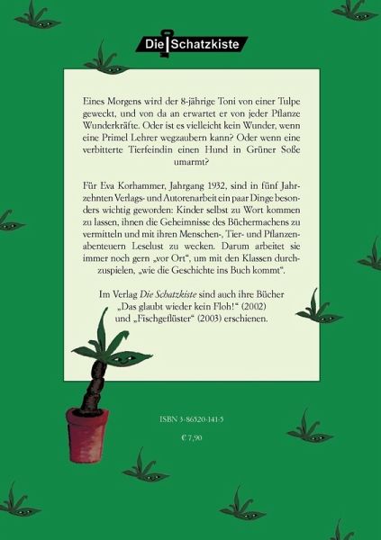 Eines Morgens wird der 8-jährige Toni von einer Tulpe geweckt, und von da an erwartet er von jeder Pflanze Wunderkräfte. Oder ist es vielleicht kein Wunder, wenn eine Primel Lehrer wegzaubern kann? Oder wenn eine verbitterte Tierfeindin einen Hund in Grüner Soße umarmt?