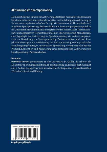 Dominik Schwizer untersucht Aktivierungsstrategien namhafter Sponsoren im Sport und entwickelt konzeptionelle Ansätze zur Gestaltung von Aktivierung in Sportsponsoring-Partnerschaften. Er zeigt Mechanismen und Themenfelder auf, mit denen Sportsponsoring-Partnerschaften aus Sponsorenperspektive gezielt in die Unternehmenskommunikation integriert werden können. Eine Themenlandkarte mit aggregierten Herausforderungen im Sportsponsoring-Management, eine Typologie zur Aktivierung im Sportsponsoring, ein Aktivierungskonzept zur Gestaltung von Sportsponsoring-Partnerschaften und zwei Projektrealisierungen zur Aktivierung im Sportsponsoring sowie praxisnahe Handlungsempfehlungen unterstützen Sponsoring-Verantwortliche bei der Planung, Konzeption und Realisierung einer professionellen Aktivierung von Sportsponsoring-Partnerschaften.
