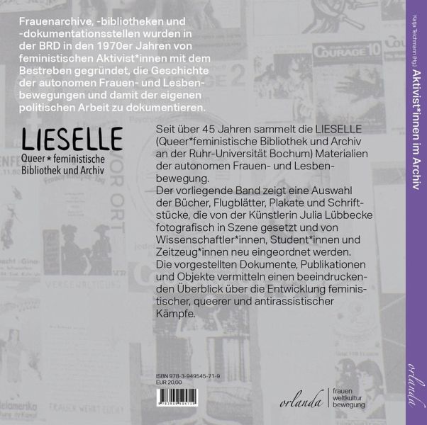 »Die Publikation möchte auch danach fragen, was sich jenseits der Bestände, die vor allem die Geschichte weißer, westdeutscher Akademiker_innen erzählen, in den Regalen und Archivkartons befindet. Im Bewusstsein der Leerstellen im Archiv werden auch und gerade Materialien und Autor_innen vorgestellt, die die Bedeutung (post-) migrantischer Communitys für Frauen-/Lesbenbewegungsgeschichte sowie antirassistische Kämpfe von BIPoC sichtbar machen.« Katja Teichmann