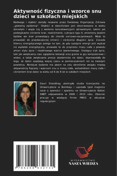 Nadwaga i oty¿o¿¿ zostäy nazwane przez ¿wiatow¿ Organizacj¿ Zdrowia "globaln¿ epidemi¿". Oty¿o¿¿ w dzieci¿stwie jest obserwowana w wieku doros¿ym i wi¿¿e si¿ z wieloma konsekwencjami zdrowotnymi, takimi jak podwy¿szone ci¿nienie krwi, nadci¿nienie, cukrzyca typu II, zmieniony poziom lipidów we krwi prowadz¿cy do chorób sercowo-naczyniowych. Mo¿e to prowadzi¿ do przedwczesnej ¿mierci i skrócenia d¿ugo¿ci ¿ycia. Zasada bilansu energetycznego polega na tym, ¿e gdy spo¿ycie energii jest wy¿sze ni¿ wydatek energetyczny, prowadzi to do przyrostu masy ciäa z powodu zmian stylu ¿ycia i niezdrowego wzorca ¿ywieniowego. Siedz¿cy tryb ¿ycia, taki jak zwi¿kszony czas ogl¿dania telewizji oraz granie w gry komputerowe i wideo, a tak¿e zwi¿kszona presja akademicka na dzieci, doprowadzi¿y do tego, ¿e dzieci sp¿dzaj¿ wi¿cej czasu w pomieszczeniach ni¿ na ¿wie¿ym powietrzu. Niniejsze badanie ma zatem na celu okre¿lenie zwi¿zku mi¿dzy aktywno¿ci¿ fizyczn¿ i wzorcem snu a mas¿ ciäa, wskänikiem masy ciäa i ci¿nieniem krwi dzieci w wieku od 6 do 8 lat w szko¿ach miejskich.