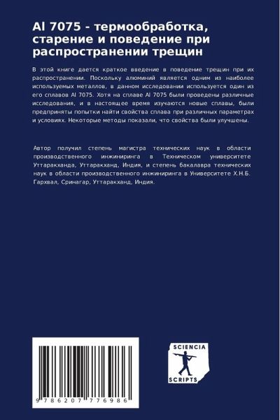 V ätoj knige daetsq kratkoe wwedenie w powedenie treschin pri ih rasprostranenii. Poskol'ku alüminij qwlqetsq odnim iz naibolee ispol'zuemyh metallow, w dannom issledowanii ispol'zuetsq odin iz ego splawow Al 7075. Hotq na splawe Al 7075 byli prowedeny razlichnye issledowaniq, i w nastoqschee wremq izuchaütsq nowye splawy, byli predprinqty popytki najti swojstwa splawa pri razlichnyh parametrah i uslowiqh. Nekotorye metody pokazali, chto swojstwa byli uluchsheny.