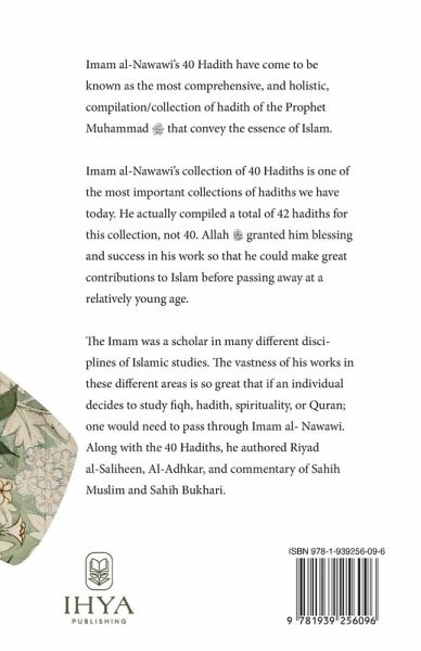 Imam al-Nawawi's 40 Hadith have come to be known as the most comprehensive, and holistic, compilation/collection of hadith of the Prophet Muhammad ¿ that convey the essence of Islam. Imam al-Nawawi's collection of 40 Hadiths is one of the most important collections of hadiths we have today. He actually compiled a total of 42 hadiths for this collection, not 40. Allah granted him blessing and success in his work so that he could make great contributions to Islam before passing away at a relatively young age. The Imam was a scholar in many different disciplines of Islamic studies. The vastness of his works in these different areas is so great that if an individual decides to study fiqh, hadith, spirituality, or Quran; one would need to pass through Imam al- Nawawi. Along with the 40 Hadiths, he authored Riyad al-Saliheen, Al-Adhkar, and commentary of Sahih Muslim and Sahih Bukhari.