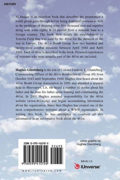 Al Ataque is an excellent book that describes the preparation a bomb group goes through before being deployed overseas as well as the problems of shipping some five thousand men and supplies along with some eighty B-24 aircraft from a stateside base to a foreign country. The book then details the establishment of Torretta Field that was used by the 461st for the duration of the war in Europe. The 461st Bomb Group flew two hundred and twenty-three combat missions between April 1944 and April 1945. Each of these is described in the book. Personal experiences of veterans who were actually part of the 461st are included.