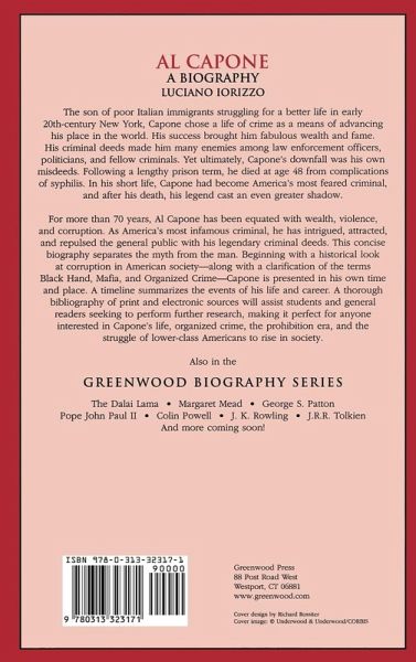 For more than 70 years, Al Capone has been equated with wealth, violence, and corruption. As America's most infamous criminal, he has intrigued, attracted, and repulsed the general public with his legendary criminal deeds. This concise biography separates the myth from the man. Beginning with a historical look at corruption in American society-along with a clarification of the terms Black Hand, Mafia, and Organized Crime-Capone is presented in his own time and place. A timeline summarizes the events of his life and career. A thorough bibliography of print and electronic sources will assist students and general readers interested in further research, making it perfect for anyone interested in Capone's life, organized crime, the prohibition era, and the struggle of lower-class Americans to rise in society. The son of poor Italian immigrants struggling for a better life in early 20th-century New York, Capone chose a life of crime as a means of advancing his place in the world. His success brought him fabulous wealth and fame. His criminal deeds made him many enemies among law enforcement officers, politicians, and fellow criminals. Yet ultimately, Capone's downfall was his own misdeeds. Following a lengthy prison term, he died at age 48 from complications of syphilis. In his short life, Capone had become America's most feared criminal, and after his death, his legend cast an even greater shadow.