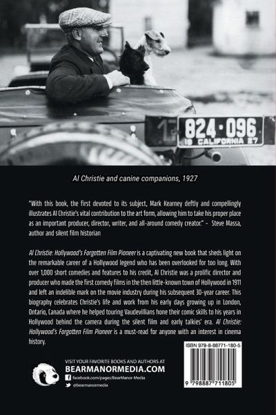 Al Christie and canine companions, 1927 "With this book, the first devoted to its subject, Mark Kearney deftly and compellingly illustrates Al Christie's vital contribution to the art form, allowing him to take his proper place as an important producer, director, writer, and all-around comedy creator." - Steve Massa, author and silent film historian Al Christie: Hollywood's Forgotten Film Pioneer is a captivating new book that sheds light on the remarkable career of a Hollywood legend who has been overlooked for too long. With over 1,000 short comedies and features to his credit, Al Christie was a prolific director and producer who made the first comedy films in the then little-known town of Hollywood in 1911 and left an indelible mark on the movie industry during his subsequent 30-year career. This biography celebrates Christie's life and work from his early days growing up in London, Ontario, Canada where he helped touring Vaudevillians hone their comic skills to his years in Hollywood behind the camera during the silent film and early talkies' era. Al Christie: Hollywood's Forgotten Film Pioneer is a must-read for anyone with an interest in cinema history.