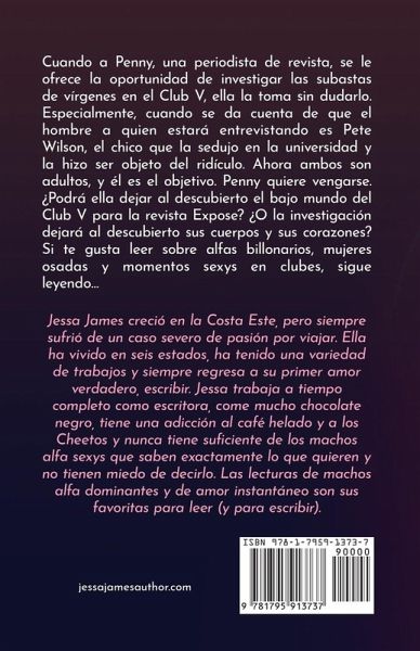 Cuando a Penny, una periodista de revista, se le ofrece la oportunidad de investigar las subastas de vírgenes en el Club V, ella la toma sin dudarlo. Especialmente, cuando se da cuenta de que el hombre a quien estará entrevistando es Pete Wilson, el chico que la sedujo en la universidad y la hizo ser objeto del ridículo. Ahora ambos son adultos, y él es el objetivo. Penny quiere vengarse. ¿Podrá ella dejar al descubierto el bajo mundo del Club V para la revista Expose? ¿O la investigación dejará al descubierto sus cuerpos y sus corazones? Si te gusta leer sobre alfas billonarios, mujeres osadas y momentos sexys en clubes, sigue leyendo...