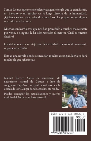 Gabriel, el protagonista de la presente novela, con su muerte al principio de la trama inicia un viaje fantástico hacia el más allá. La historia comienza con el juicio o evaluación de su vida terrenal y transcurre con una serie de pruebas que debe superar antes de alcanzar el paraíso. El encuentro con un amigo en problemas lo lleva a transitar la oscuridad del purgatorio para luego recibir una serie de lecciones previas a su ascenso final. La presente obra roza la fantasía, religión, ficción, teología, misticismo, épica, filosofía e incluso el campo de las leyendas urbanas, ya que mezcla en su interesante hilo una serie de creencias con las que coexistimos a diario. Es una obra que invita a la reflexión entre lo humano y lo divino.