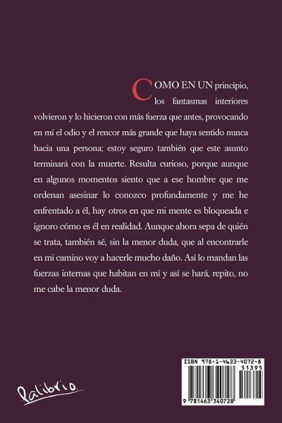 Como en un principio, los fantasmas interiores volvieron y lo hicieron con más fuerza que antes, provocando en mí el odio y el rencor más grande que haya sentido nunca hacia una persona; estoy seguro también que este asunto terminará con la muerte. Resulta curioso, porque aunque en algunos momentos siento que a ese hombre que me ordenan asesinar lo conozco profundamente y me he enfrentado a él, hay otros en que mi mente es bloqueada e ignoro cómo es él en realidad. Aunque ahora sepa de quién se trata, también sé, sin la menor duda, que al encontrarle en mi camino voy a hacerle mucho daño. Así lo mandan las fuerzas internas que habitan en mí y así se hará, repito, no me cabe la menor duda.