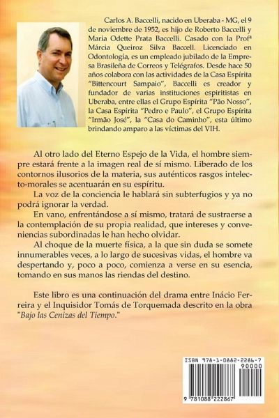 Al otro lado del Eterno Espejo de la Vida, el hombre siempre estará frente a la imagen real de sí mismo. Liberado de los contornos ilusorios de la materia, sus auténticos rasgos intelecto-morales se acentuarán en su espíritu. La voz de la conciencia le hablará sin subterfugios y ya no podrá ignorar la verdad. En vano, enfrentándose a sí mismo, tratará de sustraerse a la contemplación de su propia realidad, que intereses y conveniencias subordinadas le han hecho olvidar. Al choque de la muerte física, a la que sin duda se somete innumerables veces, a lo largo de sucesivas vidas, el hombre va despertando y, poco a poco, comienza a verse en su esencia, tomando en sus manos las riendas del destino. Este libro es una continuación del drama entre Inácio Ferreira y el Inquisidor Tomás de Torquemada descrito en la obra "Bajo las Cenizas del Tiempo."