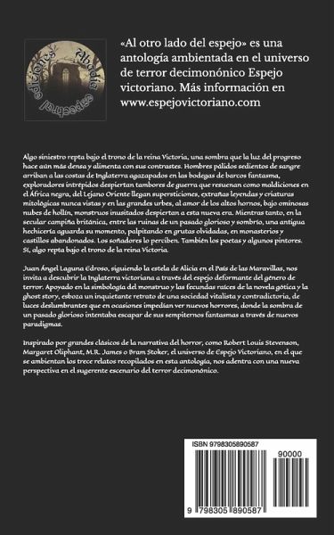 Algo siniestro repta bajo el trono de la reina Victoria, una sombra que la luz del progreso hace aún más densa y alimenta con sus contrastes. Hombres pálidos sedientos de sangre arriban a las costas de Inglaterra agazapados en las bodegas de barcos fantasma, exploradores intrépidos despiertan tambores de guerra que resuenan como maldiciones en el África negra, del Lejano Oriente llegan supersticiones, extrañas leyendas y criaturas mitológicas nunca vistas y en las grandes urbes, al amor de los altos hornos, bajo ominosas nubes de hollín, monstruos inusitados despiertan a esta nueva era. Mientras tanto, en la secular campiña británica, entre las ruinas de un pasado glorioso y sombrío, una antigua hechicería aguarda su momento, palpitando en grutas olvidadas, en monasterios y castillos abandonados. Los soñadores lo perciben. También los poetas y algunos pintores. Sí, algo repta bajo el trono de la reina Victoria. Juan Ángel Laguna Edroso, siguiendo la estela de Alicia en el País de las Maravillas, nos invita a descubrir la Inglaterra victoriana a través del espejo deformante del género de terror. Apoyado en la simbología del monstruo y las fecundas raíces de la novela gótica y la ghost story, esboza un inquietante retrato de una sociedad vitalista y contradictoria, de luces deslumbrantes que en ocasiones impedían ver nuevos horrores, donde la sombra de un pasado glorioso intentaba escapar de sus sempiternos fantasmas a través de nuevos paradigmas. Inspirado por grandes clásicos de la narrativa del horror, como Robert Louis Stevenson, Margaret Oliphant, M.R. James o Bram Stoker, el universo de Espejo Victoriano, en el que se ambientan los trece relatos recopilados en esta antología, nos adentra con una nueva perspectiva en el sugerente escenario del terror decimonónico.