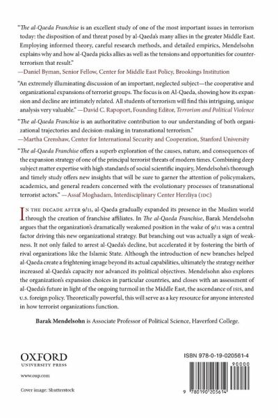The al-Qaeda Franchise asks why al-Qaeda adopted a branching-out strategy, introducing seven franchises spread over the Middle East, Africa, and South Asia. After all, transnational terrorist organizations can expand through other organizational strategies. Forming franchises was not an inevitable outgrowth of al-Qaeda's ideology or its U.S.-focused strategy. The efforts to create local franchises have also undermined one of al-Qaeda's primary achievements: the creation of a transnational entity based on religious, not national, affiliation. The book argues that al-Qaeda's branching out strategy was not a sign of strength, but instead a response to its decline in the aftermath of the 9/11 attacks. Franchising reflected an escalation of al-Qaeda's commitments in response to earlier strategic mistakes, leaders' hubris, and its diminished capabilities. Although the introduction of new branches helped al-Qaeda create a frightening image far beyond its actual capabilities, ultimately this strategy neither increased the al-Qaeda threat, nor enhanced the organization's political objectives. In fact, the rise of ISIS from an al-Qaeda branch to the dominant actor in the jihadi camp demonstrates how expansion actually incurred heavy costs for al-Qaeda. The al-Qaeda Franchise goes beyond explaining the adoption of a branching out strategy, also exploring particular expansion choices. Through nine case studies, it analyzes why al-Qaeda formed branches in some arenas but not others, and why its expansion in some locations, such as Yemen, took the form of in-house franchising (with branches run by al-Qaeda's own fighters), while other locations, such as Iraq and Somalia, involved merging with groups already operating in the target arena. It ends with an assessment of al-Qaeda's future in light of the turmoil in the Middle East, the ascendance of ISIS, and US foreign policy.