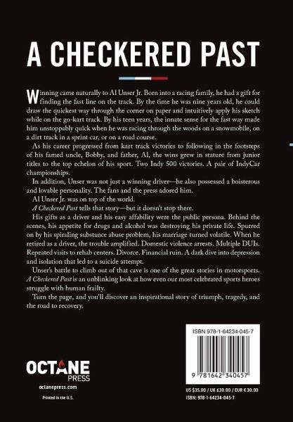 Winning came naturally to Al Unser Jr. Born into a racing family, he had a gift for finding the fast line on the track. By the time he was nine years old, he could draw the quickest way through the corner on paper and intuitively apply his sketch while on the go-kart track. By his teen years, the innate sense for the fast way made him unstoppably quick when he was racing through the woods on a snowmobile, on a dirt track, in a sprint car, or on a race course. As his career progressed from the kart track victories to following in the footsteps of his famed uncle, Bobby, and father, Al, the wins grew in stature from junior titles to the very top echelon of his sport. Two Indy 500 victories. A pair of IndyCar championships. In addition, Unser was not just a winning driver-he also possessed a boisterous and lovable personality. The fans and the press adored him. Al Unser Jr. was on top of the world. A Checkered Past tells that story-but it doesn't stop there. His gifts as a driver and his easy affability were the public persona. Behind the scenes, his appetite for drugs and alcohol were destroying his private life. Spurred on by his spiraling substance abuse problem, his marriage turned volatile. When he retired as a driver, the trouble amplified. Domestic violence arrests. Multiple DUIs. Repeated visits to rehab centers. Divorce. Financial ruin. A dark dive into depression and isolation that led to a suicide attempt. Unser's battle to climb out of that cave is one of the great stories in motorsports. A Checkered Past is an unblinking look at how even our most celebrated sports heroes struggle with human frailty. Turn the page, and you'll discover an inspirational story of triumph, tragedy, and the road to recovery.