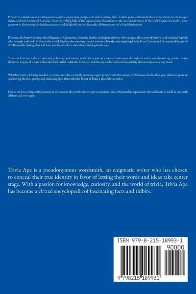 Prepare to embark on an exciting journey with a captivating compilation of fascinating facts, hidden gems, and untold stories that showcase the unique charm and rich history of Alabama. From the rolling hills of the Appalachian Mountains to the sun-kissed shores of the Gulf Coast, this book is your passport to discovering the hidden treasures and delightful quirks that make Alabama a one-of-a-kind destination. Dive into the heartwarming tales of legendary Alabamians, from the fearless civil rights activists who changed the course of history to the musical legends who brought soul and rhythm to the world. Explore the stunning natural wonders, like the awe-inspiring Little River Canyon and the mystical beauty of the Tuscumbia Spring, that will leave you in awe of the state's breathtaking landscapes. "Alabama Fun Facts" doesn't just stop at history and nature; it also takes you on a culinary adventure through the state's mouthwatering cuisine. Learn about the origins of iconic dishes like fried catfish, Alabama barbecue, and the irresistible southern hospitality that accompanies every meal. Whether you're a lifelong resident, a curious traveler, or simply someone eager to delve into the essence of Alabama, this book is your ultimate guide to uncovering the fun, quirky, and endearing facts that make the Heart of Dixie a place like no other. Join us on this unforgettable journey as we uncover the untold stories, surprising trivia, and unforgettable experiences that will make you fall in love with Alabama all over again.