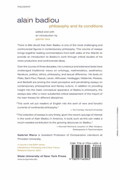 An introduction to Badiou's philosophical thought and its implications for other humanistic disciplines and the social sciences.