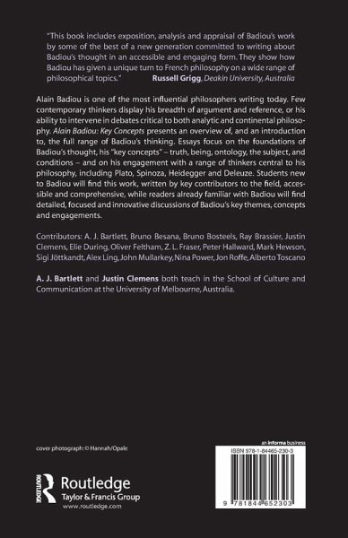 "This book includes exposition, analysis and appraisal of Badiou's work by some of the best of a new generation committed to writing about Badiou's thought in an accessible and engaging form. They show how Badiou has given a unique turn to French philosophy on a wide range of philosophical topics." - Russell Grigg, Deakin University, Australia