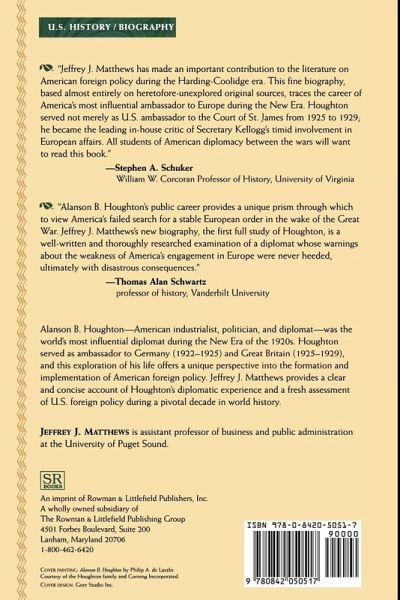 Alanson B. Houghton-American industrialist, politician, and diplomat-was the world's most influential diplomat during the "New Era" of the 1920s. Houghton, who served as ambassador to both Germany (1922-1925) and Great Britain (1925-1929), offers a unique window into the formation and implementation of American foreign policy. This fascinating new text by Jeffrey J. Matthews provides a clear and concise account of Houghton's diplomatic experience and consequently a fresh assessment of U.S. foreign policy during a pivotal decade in world history.