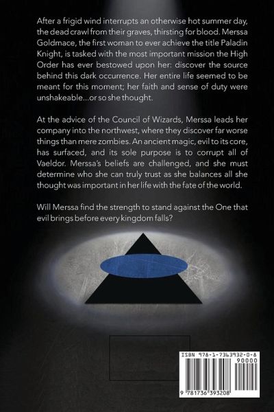 Can evil ever really be destroyed? Or does it lie dormant, awaiting its next victim? Evil is patient, and with promises of power unmatched, can any mortal resist its seduction? After a frigid wind interrupts an otherwise hot summer day, the dead crawl from their graves, thirsting for blood. Merssa Goldmace, the first woman to ever achieve the title Paladin Knight, is tasked with the most important mission the High Order has ever bestowed upon her: discover the source behind this dark occurrence. Her entire life seemed to be meant for this moment; her faith and sense of duty were unshakeable . . . or so she thought. Merssa leads her company on the path of the Wind of the Dead, but they soon discover there are far worse things than mere zombies. An ancient magic, evil to its core, has surfaced, and its sole purpose is to corrupt all of Vaeldor. Merssa's beliefs are challenged, and she must determine who she can truly trust as she balances all she thought was important in her life with the fate of the world. Will Merssa find the strength to stand against the One that Evil brings before every kingdom falls?