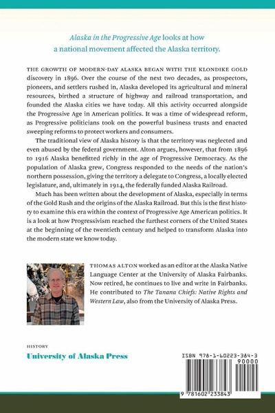 The growth of modern-day Alaska began with the Klondike gold discovery in 1896. Over the course of the next two decades, as prospectors, pioneers, and settlers rushed in, Alaska developed its agricultural and mineral resources, birthed a structure of highway and railroad transportation, and founded the Alaska cities we know today. All this activity occurred alongside the Progressive Age in American politics. It was a time of widespread reform, as Progressive politicians took on the powerful business trusts and enacted sweeping reforms to protect workers and consumers. Alaska in the Progressive Age looks at how this national movement affected the Alaska territory. Though the reigning view is that Alaska was neglected and even abused by the federal government, Alton argues that from 1896 to 1916 the territory benefitted richly in the age of Progressive Democracy. As the population of Alaska grew, Congress responded to the needs of the nation's northern possession, giving the territory a delegate to Congress, a locally elected legislature, and ultimately in 1914, the federally funded Alaska Railroad. Much has been written about the development of modern-day Alaska, especially in terms of the Gold Rush and the origins of the Alaska Railroad. But this is the first history to put this era in the context of Progressive Age American politics. This unexplored look at how Progressivism reached the furthest corners of the United States is an especially timely book as the Progressive Movement shows signs of affecting Alaska again.