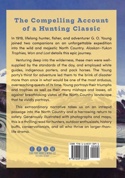 The Compelling Account of a Hunting Classic In 1919, lifelong hunter, fisher, and adventurer G. O. Young joined two companions on an unforgettable expedition into the wild and majestic North Country. Alaska~Yukon Trophies, Won and Lost details this epic journey. Venturing deep into the wilderness, these men were well supplied by the standards of the day, and employed white guides, indigenous porters, and pack horses. The Young party's thirst for adventure led them to the brink of disaster more than once in what would be one of the most arduous, overreaching quests of its time. Young portrays their triumphs and trophies as well as their many mishaps and losses, all against breathtaking vistas of the North Country landscape that he vividly portrays. This extraordinary narrative takes us on an intrepid passage into the North Country and a harrowing return to safety. Generously illustrated with photographs and maps, this is a thrilling read for hunters, outdoor enthusiasts, history buffs, conservationists, and all who thrive on larger-than-life drama. This book is also available from Echo Point Books as a hardcover (ISBN 1648373089).