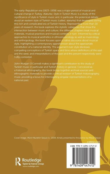 The early-Republican era (1923-1938) was a major period of musical and cultural change in Turkey. Alaturka: Style in Turkish Music is a study of the significance of style in Turkish music and, in particular, the polemical debate about an eastern style of Turkish music (called, alaturka) that developed during this rich and complicated era of Turkish history. Representing more than twenty years of research, the book explores the stylistic categories that show the intersection between music and culture; the different chapters treat musical materials, musical practices and musical contexts in turn. Informed by critical approaches to musical aesthetics in ethnomusicology as well as musicology and anthropology, the book focuses upon a native discourse about musical style, highlighting a contemporary apprehension about the appropriate constitution of a national identity. The argument over style discloses competing conceptions of Turkish space and time where definitions of the east and the west, and interpretations of the past and the present respectively were hotly contested. John Morgan O'Connell makes a significant contribution to the study of Turkish music in particular and Turkish history in general. Conceived as a historical ethnography, the book brings together archival sources and ethnographic materials to provide a critical revision of Turkish historiography, music providing a locus for interrogating singular representations of a national past.