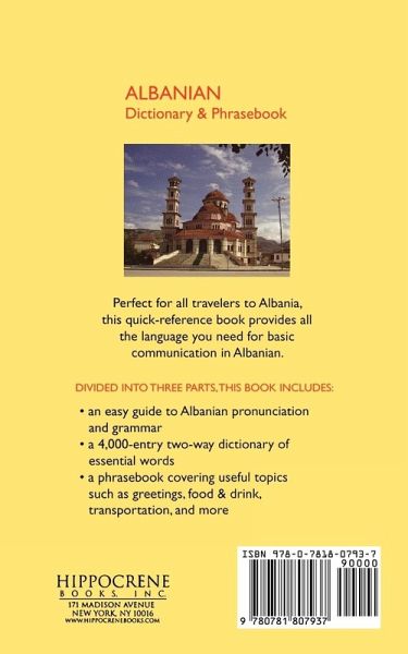 This dictionary and phrasebook is divided into three parts: the Albanian alphabet and pronunciation, dictionary with basic key vocabulary, and an extensive Albanian phrasebook covering topics such as number, transportation, shopping, eating out and much more.