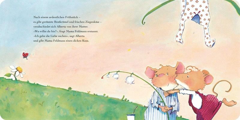 "Was ist Liebe?", fragt Alberta. "Liebe ist, wenn in dir alles flattert und kribbelt und dein Herz Purzelbäume schlägt!", sagt Mama Maus.