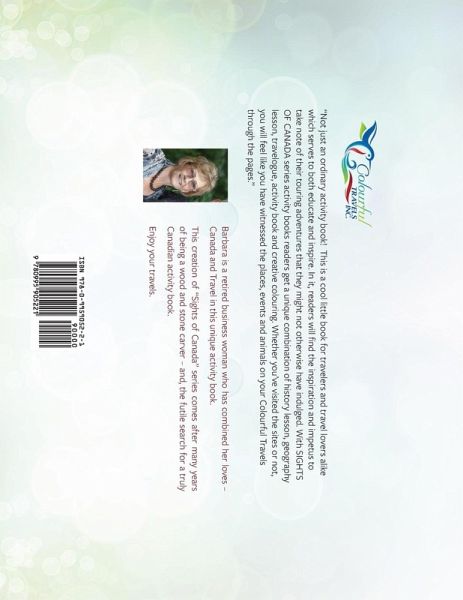 The Six SIGHTS OF CANADA book series are travel, journal, activity books about CANADA. They are about places, events and animals which you might see as you travel across the country; there is space for you to journal, colour each picture to your satisfaction, doodle and draw, - truly making your book a very personal keepsake. The books include word searches, cross words, mazes, poetry, stories, narratives about the pictures, sudoku, sentence creation space, thoughts for the day, and other interesting tidbits about each area. Enjoy the calmness of taking a break from electronics and the outside worldly stresses. Each book begins with an outline of the province and/or territory, the official flower and provincial flag. Included are a few coloured pictures to encourage your creativity. Find your town or make sure to mark your place with a star of your own making. The sojourn through Alberta will take you through the mountains - The Three Sisters, Lake Louise, into the badlands of Drumheller and free roaming Dinosaurs, Buffalo Jumps, Renewable Resources of the Old Man Dam and Wind Turbines, the serene beauty of Cypress Hills, city skylines, the history of the 1988 Olympics, Rodeo and First Nations people, horses and chuckwagons, the Parliament Buildings, Muttart Conservatory, Ft. McMurray, birds, cougars, moose, bears and bunnies, big horn sheep, insects, loons and much more. Enjoy the history, geography, art and social aspects of the Sights of Alberta. For details and information about the author visit www.colourfultravels.com Email: info@colourfultravels.com Facebook: colourfultravelsca