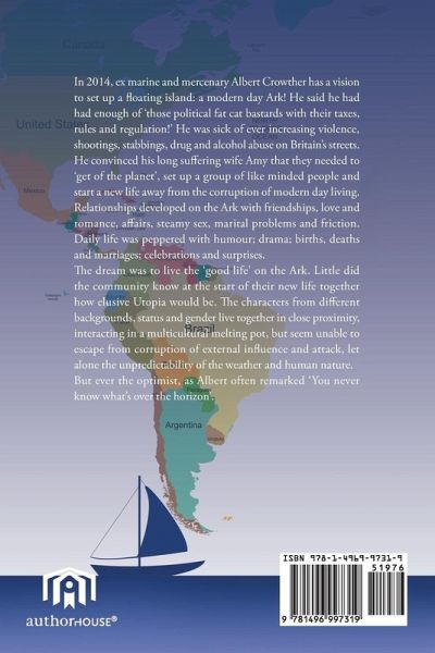 In 2014, ex marine and mercenary Albert Crowther has a vision to set up a floating island: a modern day Ark! He said he had had enough of 'those political fat cat bastards with their taxes, rules and regulation!' He was sick of ever increasing violence, shootings, stabbings, drug and alcohol abuse on Britain's streets. He convinced his long suffering wife Amy that they needed to 'get of the planet', set up a group of like minded people and start a new life away from the corruption of modern day living. Relationships developed on the Ark with friendships, love and romance, affairs, steamy sex, marital problems and friction. Daily life was peppered with humour; drama; births, deaths and marriages; celebrations and surprises. The dream was to live the 'good life' on the Ark. Little did the community know at the start of their new life together how elusive Utopia would be. The characters from different backgrounds, status and gender live together in close proximity, interacting in a multicultural melting pot, but seem unable to escape from corruption of external influence and attack, let alone the unpredictability of the weather and human nature. But ever the optimist, as Albert often remarked 'You never know what's over the horizon'.