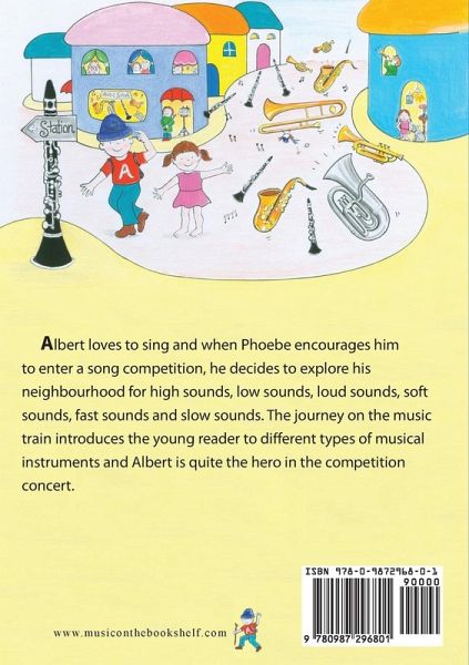 Albert loves to sing and when Phoebe encourages him to enter a song competition, he decides to explore his neighbourhood for high sounds, low sounds, loud sounds, soft sounds, fast sounds and slow sounds. The journey on the music train introduces the young reader to different types of musical instruments and Albert is quite the hero in the competition concert.