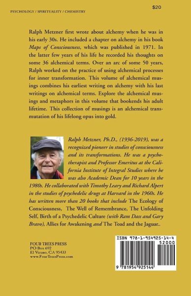 Ralph Metzner first wrote about alchemy when he was in his early 30s. He included a chapter on alchemy in his book Maps of Consciousness, which was published in 1971. In the last few years of his life Ralph recorded his thoughts on some 36 alchemical terms. Over an arc of some 50 years, Ralph worked on the practice of using alchemical processes for inner transformation. This volume of musings combines his earliest writing on alchemy with his last writings on alchemical terms, bookends of an arc of exploration.