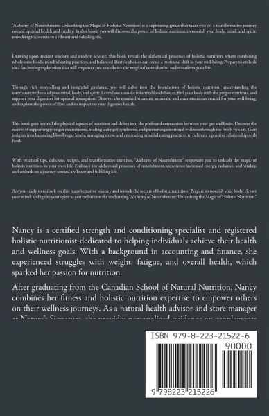 Nancy Tran is a passionate advocate for holistic health and nutrition. With a deep-rooted belief in the transformative power of healthy living, she has dedicated her life to helping others achieve their wellness goals. Nancy is a Registered Holistic Nutritionist (RHN) and Certified Strength and Conditioning Specialist (CSS) with extensive knowledge and experience in the field. Her compassionate approach and personalized guidance have empowered countless individuals to make positive life changes. Through her 1-on-1 consultations and writings, Nancy strives to simplify the complexities of healthy eating, making it accessible and enjoyable for everyone. Nancy's expertise extends beyond nutrition as she recognizes the interconnectedness of mind, body, and soul. Her holistic approach emphasizes the importance of mental well-being, self-care practices, and mindful living. She firmly believes nourishing the body with wholesome food is a gateway to achieving harmony and vitality. As an author, Nancy's writing style is engaging, practical, and filled with genuine care for her readers. Her words inspire and motivate, guiding individuals towards a healthier lifestyle and equipping them with the tools to sustain their journey. When she's not immersed in the world of nutrition, Nancy enjoys exploring nature, travelling, experimenting with new recipes in the kitchen, and spending quality time with loved ones. Her genuine passion for health and wellness shines through in all aspects of her life, making her a trusted source of inspiration and knowledge. Through this book and her various endeavours, Nancy seeks to empower individuals to take charge of their health, cultivate self-love, and embrace the transformative power of a healthy lifestyle.