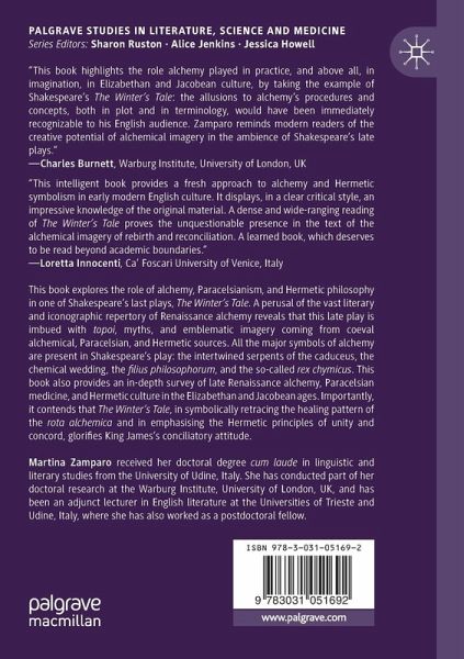 This book explores the role of alchemy, Paracelsianism, and Hermetic philosophy in one of Shakespeare's last plays, The Winter's Tale. A perusal of the vast literary and iconographic repertory of Renaissance alchemy reveals that this late play is imbued with several topoi, myths, and emblematic symbols coming from coeval alchemical, Paracelsian, and Hermetic sources. It also discusses the alchemical significance of water and time in the play's circular and regenerative pattern and the healing role of women. All the major symbols of alchemy are present in Shakespeare's play: the intertwined serpents of the caduceus, the chemical wedding, the filius philosophorum, and the so-called rex chymicus. This book also provides an in-depth survey of late Renaissance alchemy, Paracelsian medicine, and Hermetic culture in the Elizabethan and Jacobean ages. Importantly, it contends that The Winter's Tale, in symbolically retracing the healing pattern of the rotaalchemica and in emphasising theHermetic principles of unity and concord, glorifies King James's conciliatory attitude.