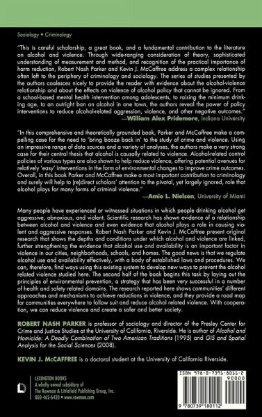 List of Figures List of Tables Preface and Acknowledgments Introduction Chapter 1: Alcohol and the risk of violent Victimization and Injury Chapter 2: Alcohol Availability and Violence among Mexican American Youth Chapter 3: Sexual Violence, Alcohol, and Advertising Chapter 4: Alcohol, Drugs, Victimization and Aggression: The Impact of a School based Mental Health Intervention on Adolescent Substance Use and Violent Behavior Chapter 5: Alcohol, Homicide, and Cultural Context: A Cross National Analysis of Gender Specific Victimization Chapter 6: The History, Logic and Importance of Environmental Crime Prevention Chapter 7: The Impact of Raising the Minimum Drinking Age on Youth Homicide Chapter 8: The Impact of Banning Alcohol on Criminal Assault in Barrow, Alaska Chapter 9: What Happens when Alcohol Outlet Density Decreases? Chapter 10: The Unintended Consequences of Alcohol Based Environmental Interventions on Violence Chapter 11: Conclusions References Figures Tables Endnotes