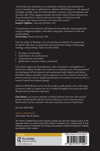 "Gina Hames has undertaken an extraordinarily ambitious and comprehensive survey of alcohol's place in global history. Alcohol in World History is a well-organized and highly readable study, one which should be of interest to general audiences and specialists alike. With engaging examples and careful analysis, Hames demonstrates the profound political, cultural, and economic impact of alcohol on world civilizations, from ancient societies to the twenty-first century." - Joseph F. Spillane, University of Florida, USA