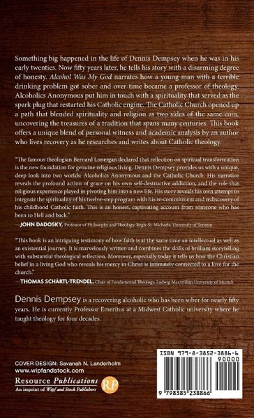 Something big happened in the life of Dennis Dempsey when he was in his early twenties. Now fifty years later, he tells his story with a disarming degree of honesty. Alcohol Was My God narrates how a young man with a terrible drinking problem got sober and over time became a professor of theology. Alcoholics Anonymous put him in touch with a spirituality that served as the spark plug that restarted his Catholic engine. The Catholic Church opened up a path that blended spirituality and religion as two sides of the same coin, uncovering the treasures of a tradition that spans many centuries. This book offers a unique blend of personal witness and academic analysis by an author who lives recovery as he researches and writes about Catholic theology.