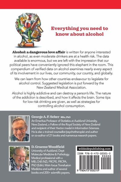 An in-depth study of the effects of alcohol on users, the community, the nation of New Zealand, and globally - everything you need to know about alcohol. This compendium of verified data on alcohol examines nearly every aspect of its involvement in our lives, our community, our country, and globally. Alcohol: a dangerous love affair is written for anyone interested in alcohol, as even moderate drinkers are at a health risk. The data available is enormous, but we are left with the impression that our political peers have conveniently ignored this elephant in the room. This compendium of verified data on alcohol examines nearly every aspect of its involvement in our lives, our community, our country, and globally. We can learn from how other countries endeavour to legislate for alcohol control. Suggested legislation is put forward by the New Zealand Medical Association. Alcohol is highly addictive and can destroy a person’s life. The nature of the addiction is described, and how it affects the brain. Some tips for low risk drinking are given as well as strategies for controlling alcohol consumption.