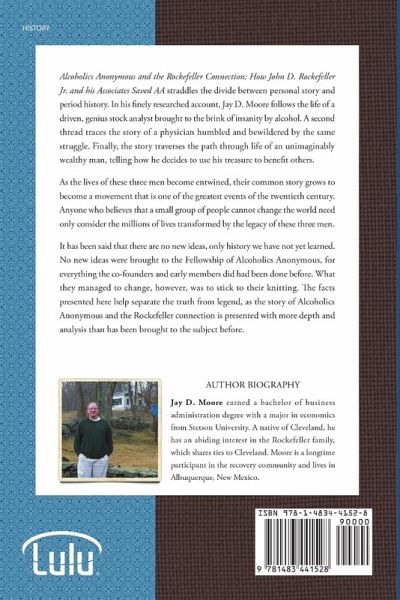 This book straddles the divide between personal story and period history. In his finely researched account, Jay D. Moore follows the life of a driven, genius stock analyst brought to the brink of insanity by alcohol. A second thread traces the story of a physician humbled and bewildered by the same struggle. Finally, the story traverses the path through life of an unimaginably wealthy man, telling how he decides to use his treasure to benefit others. It has been said that there are no new ideas, only history we have not yet learned. No new ideas were brought to the Fellowship of Alcoholics Anonymous, for everything the co-founders and early members did had been done before. What they managed to change, however, was to stick to their knitting. The facts presented here help separate the truth from legend, as the story of Alcoholics Anonymous and the Rockefeller connection is presented with more depth and analysis than has been brought to the subject before.