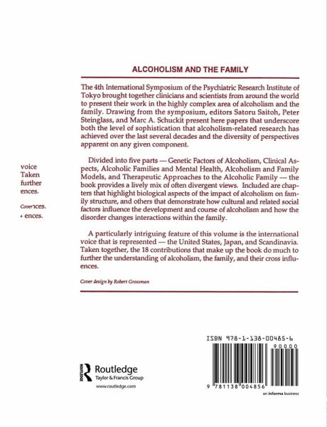 Preface Contributors Introduction I. GENETIC FACTORS OF ALCOHOLISM 1. Alcoholism A Familial Disorder: Genetic Aspects 2. CNV of Substance Use Patients with Alcoholic Father 3. Drinking Behavior and Lifestyles in Twins PART I: Discussion II. GENETIC FACTORS OF ALCOHOLISM: CLINICAL ASPECTS 4. Steps Towards a Classification of Alcoholism: Lessons from Adoption Studies 5. Prospective Evidence for the Effects of Environment upon Alcoholism 6. Genetic Polymorphism of Aldehyde Dehydrogenase in Orientals as a Genetic Marker of a High-Risk Group of Alcoholism PART II: Discussion III. ALCOHOLIC FAMILIES AND MENTAL HEALTH 7. International Perspectives on Alcoholism and the Family: An Overview of WHO Activities 8. The Results of a Survey on Counseling at Public Health Centers in Tokyo 9. Alcoholism and the Native American Family PART III: Discussion IV. ALCOHOLISM AND FAMILY MODELS 10. Family Systems Approaches to the Alcoholic Family: Research Findings and Their Clinical Applications 11. Therapeutic Control and Therapeutic Impasse: Therapists Hitting Bottom with an Alcoholic Family 12. A Cultural Approach to Conceptualizing Alcohol and the Family 13. Marriage Patterns of Females from Alcoholic Families in Japan PART IV: Discussion V. THERAPEUTIC APPROACHES TO THE ALCOHOLIC FAMILY 14. Our Experiences in Family Therapy 15. Treatment of Psychiatric Illness in Adolescents with Alcoholic Parents 16. Therapeutic Effects of Counseling on Wives of Alcoholics 17. Psychotherapeutic Treatment of Alcoholic Families: Broad-Spectrum Intervention 18. Effects of Family Alcoholism PART V: Discussion Name Index Subject Index