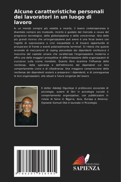 In un mondo sempre più volatile e incerto, il lavoro contemporaneo è diventato sempre più mutevole, incerto e guidato dal mercato a causa del progresso tecnologico, della globalizzazione e della concorrenza. Una delle più grandi risorse che un'organizzazione può avere è una forza lavoro con l'agilità di sopravvivere a crisi inaspettate e di trovare opportunità di prosperare di fronte a eventi potenzialmente terminali. Si ritiene che questo arsenale di meccanismi di coping posseduto dai dipendenti costituisca il massimo del capitale umano che caratterizza l'organizzazione moderna e offra una delle maggiori prospettive di differenziazione delle organizzazioni di successo sulla scena mondiale. Questo libro esamina l'influenza della resilienza, della speranza e dell'ottimismo dei dipendenti sul loro comportamento civico e di cittadinanza. Una maggiore comprensione della resilienza dei dipendenti aiuterà a preparare i dipendenti, e di conseguenza le loro organizzazioni, alle attuali e future esigenze del lavoro.