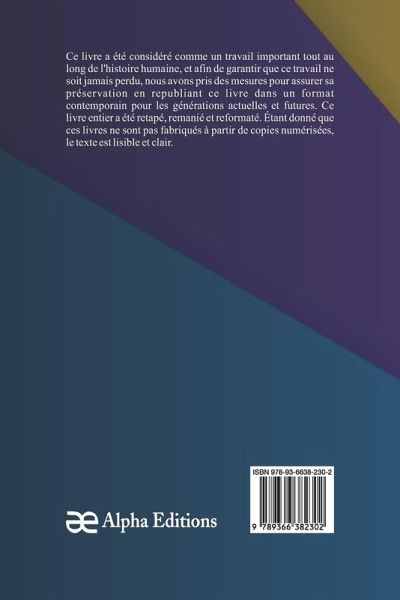 Aldo le rimeur"", constitue un phare dans le monde du livre, comblant le fossé entre le passé et le présent. Autrefois considéré parmi les livres anciens, cet ouvrage classique, comme tant de livres anciens et oubliés, a façonné notre compréhension de la culture et de l'histoire. exemple remarquable de livres d'histoire qui ont influencé des générations, et maintenant, grâce au dévouement d'Alpha Editions, votre éditeur de livres de confiance, il renaît dans un format frais et élégant. Nous avons soigneusement retapé, remanié et amélioré ce livre pour qu'il soit bien plus qu'un simple titre à lire. Vous pouvez désormais profiter de pages claires et faciles à lire, sans numérisation floue ni texte décoloré. En choisissant cette édition, vous investissez dans plus qu'un livre : vous sauvegardez un héritage. Votre soutien maintient en vie un morceau remarquable du patrimoine humain, garantissant que ses leçons et ses inspirations continuent de résonner dans le futur.