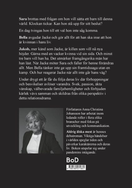 Sara brottas med frågan om hon vill sätta ett barn till denna värld. Klockan tickar. Kan hon stå upp för sitt beslut? En dag tvingas hon till ett val hon inte såg komma. Bella avgudar Jacke och gör allt för att han ska inse att hon är kvinnan i hans liv. Killen som vill nå nya höjder, det är Jakob mer känd om Jacke. Gärna med en vacker kvinna vid sin sida. När Jacke möter Sara och faller för henne förändras allt. Men Bella tänker inte ge upp sin framtidssaga utan en kamp. Och hur reagerar Jacke när allt inte går hans väg? Under drygt ett år får du följa deras liv där förhoppningar och besvikelser avlöser varandra. Svek, passion, äkta vänskap, välbevarade familjehemligheter och förbjuden kärlek vävs samman och skildras från olika perspektiv i detta relationsdrama. Viktiga händelser i världen speglar tiden och påverkar karaktärerna och deras liv. Boken utspelar sig under pandemins intågande.
