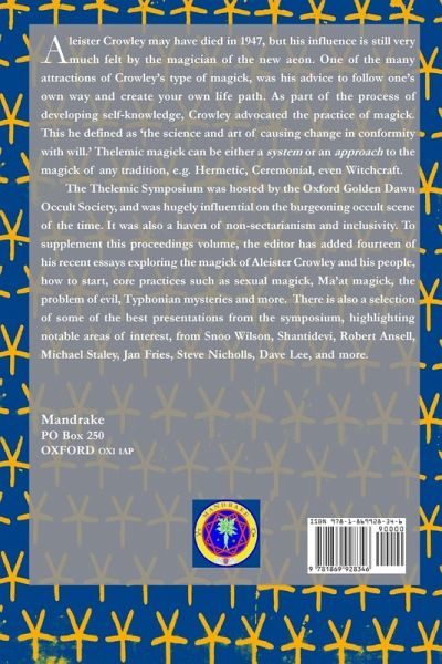 Hell of a Guru Do what thou wilt shall be the whole of the law Aleister Crowley may have died in 1947, but his influence is still very much felt by the magician of the new aeon. The CD soundtrack The Beast Speaks sold 8000 copies since its release in 1993, and the paperback edition of Crowley's Confessions was number two in Virgin Megastores top ten books. The modern magician is no slavish follower or member of some mind bending cult. Crowley's watch word was Thelema (The Crowleian pronunciation is Theh-LEE-mah, the accent being on the vowel of the second syllable, Greek speakers say the accent should be on the vowel of the first syllable for it to be pronounced right....ThEH-lee-mah) - which means [free] Will. Those who choose to follow this magical path aim to de-condition themselves, to develop independence of spirit and ultimately to become their very own self. One of the many attractions of Crowley's type of magick, was his advice to follow one's own way and create your own life path. You don't need a priest or a judge to tell you how to act - work it out for yourself. As part of the process of developing self-knowledge, Crowley advocated the practice of magick. This he defined as 'the science and art of causing change in conformity with will.' Thelemic magick can be either a system or an approach to the magick of any tradition, e.g. Hermetic, Ceremonial, even Witchcraft. In Thelema, as in all other styles of magick, there are at least two different types of magical entity - the 'Masonic' and the 'Rosicrucian'. The Masonic tends to be organized into definite hierarchical orders; whereas the Rosicrucian is more freeform, often a mere network of peers. The authors of what follows reflect many of these different styles of Thelemic magick and reading what they say is perhaps the best way to grasp what Thelemic magick is all about. As part of the process of developing self knowledge, Crowley advocated the practice of Magick. This he defined as 'the science and art of causing change in conformity with will.' The history of magick is the history of human beings. Many of the things that are now labelled 'culture' began as experiments in ritual and magick viz. drama, music, art, dance, philosophy and poetry etc., etc. Magick has played a role in many key moments of our history, for example during the fourteenth century, it was the philosophy of the Renaissance. In our own time, many modern art movements have been driven by magical ideas, for instance, the first abstract painting was made by the Theosophist Kandinsky. Magick is a valuable and reputable activity to undertake. The Thelemic Symposium was hosted by the Oxford Golden Dawn Occult Society, and was hugely influential on the burgeoning occult scene of the time. It was also a haven of non-sectarianism and inclusivity. To supplement this proceedings volume, the editor has added fourteen of his recent essays exploring the magick of Aleister Crowley and his people, how to start, core practices such as sexual magick, Ma'at magick, the problem of evil, Typhonian mysteries and more. There is also a selection of some of the best presentations from the symposium, highlighting notable areas of interest, from Snoo Wilson, Shantidevi, Robert Ansell, Michael Staley, Jan Fries, Steve Nicholls, Dave Lee, and more.