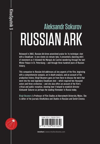 Released in 2002, Russian Ark drew astonished praise for its technique: shot with a Steadicam in one ninety-six-minute take, it presented a dazzling whirl of movement as it followed the Marquis de Custine as he wandered through the vast Winter Palace in St. Petersburg - and through three hundred years of Russian history. This companion to Russian Ark addresses all key aspects of the film, beginning with a comprehensive synopsis, an in-depth analysis and an account of the production history. Birgit Beumers goes on from there to discuss the work that went into the now-legendary Steadicam shot - which required two thousand actors and three orchestras - and she also offers an account of the film's critical and public reception, showing how it helped to establish director Aleksandr Sokurov as perhaps the leading filmmaker in Russia today. A list of all books in the series is here on the series page KinoSputnik